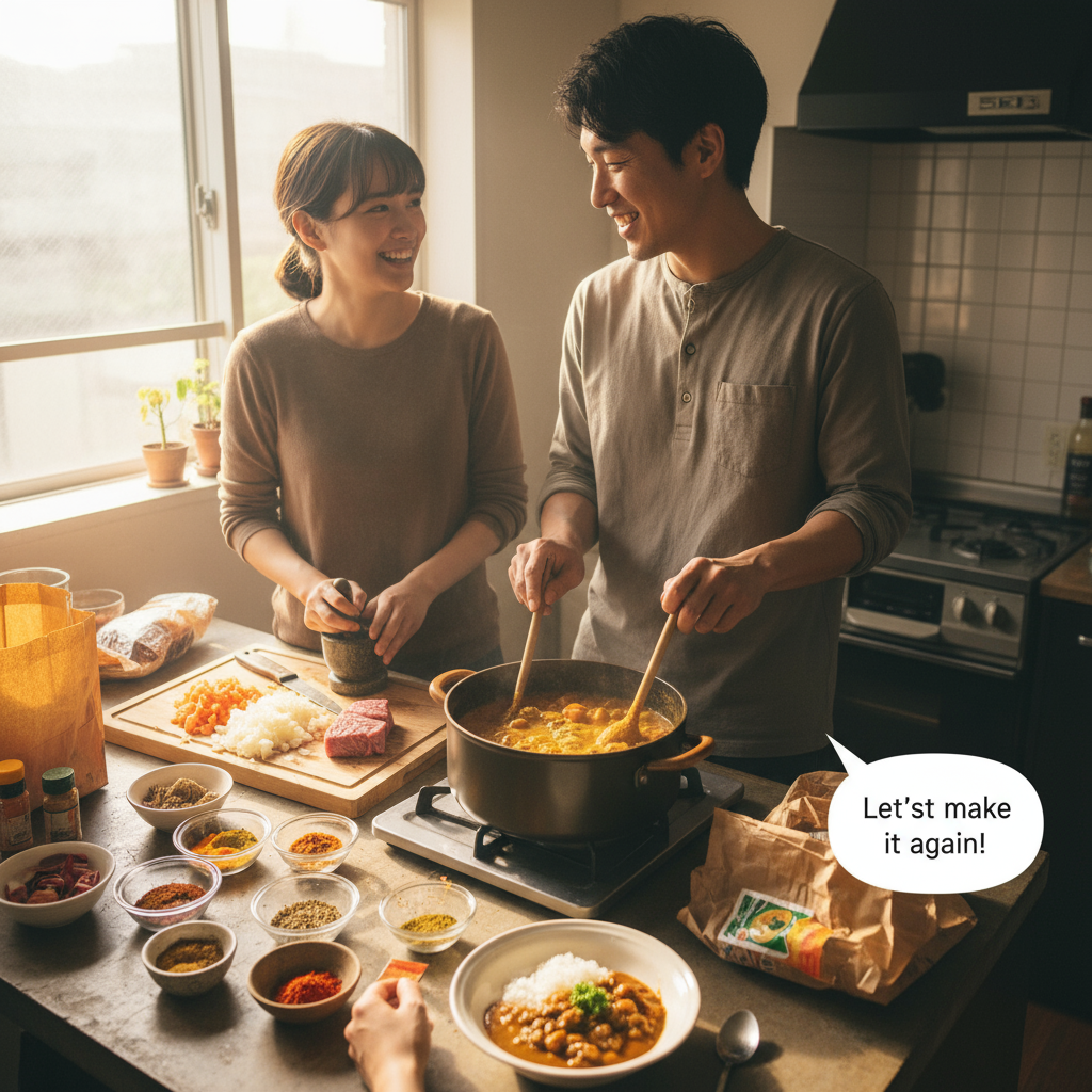 キッチンで過ごした午後のひととき。二人で作ったカレーライスの味は、市販のものやお店で食べるものとは比べものにならない特別な味わいがありました。それは単にスパイスの配合が良かったからではなく、二人で過ごした時間の味が染み込んでいたからかもしれません。