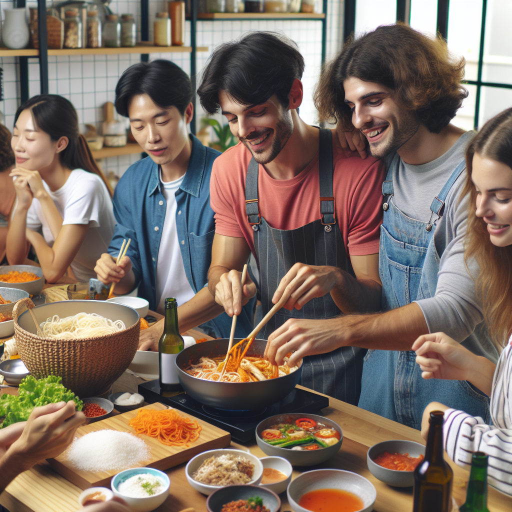 週末の午後、私のアパートのリビングには、普段より賑やかな空気が漂っていました。友人たちと一緒に韓国料理パーティーを開くことになったのです。最近、韓国ドラマにハマっている友人の美咲の提案で、みんなで韓国料理を作って食べようということになりました。