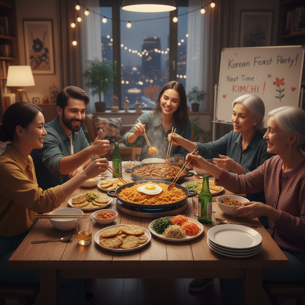 この日の韓国料理パーティーは大成功でした。料理を通じて友人たちとの絆が深まり、韓国の食文化の素晴らしさを共有できたことが何より嬉しかったです。辛さを調整し、みんなで作って食べることで、韓国料理をより身近に感じてもらえたと思います。