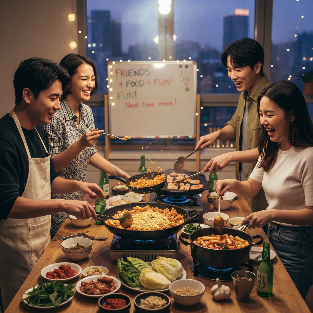 週末の午後、私のアパートには懐かしい友人たちの笑い声が響いていました。今日は久しぶりに集まって韓国料理パーティーを開催することになったのです。SNSで話題の韓国料理を皆で作って楽しもうという企画は、私が何気なく投げかけた一言から始まりました。