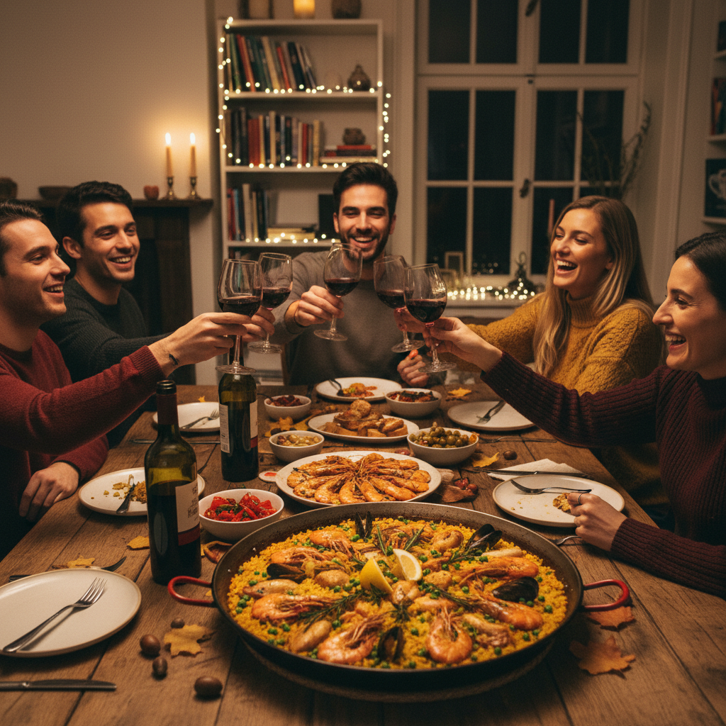 十一月の終わり、窓の外が薄暗くなり始める時刻に、友人たちが次々と玄関をくぐった。今夜のテーマはスパニッシュ料理とワイン。数週間前から準備を重ねてきたこのパーティーは、私にとって久しぶりの大掛かりな催しだった。テーブルには赤と黄色のクロスを敷き、キャンドルを並べた。照明を少し落とすと、部屋全体が温かみのある空気に包まれる。