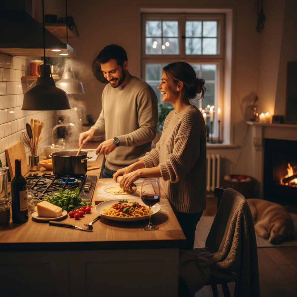 週末の夜、街の喧騒が遠くなる時間帯。窓の外には静かな夜の帳が降り、部屋の中には柔らかな照明だけが灯る。そんな特別な時間に、二人で囲む食卓は何にも代えがたい贅沢です。レストランでの華やかな食事も素敵ですが、自宅で心を込めて作る料理には、また違った温かさがあります。