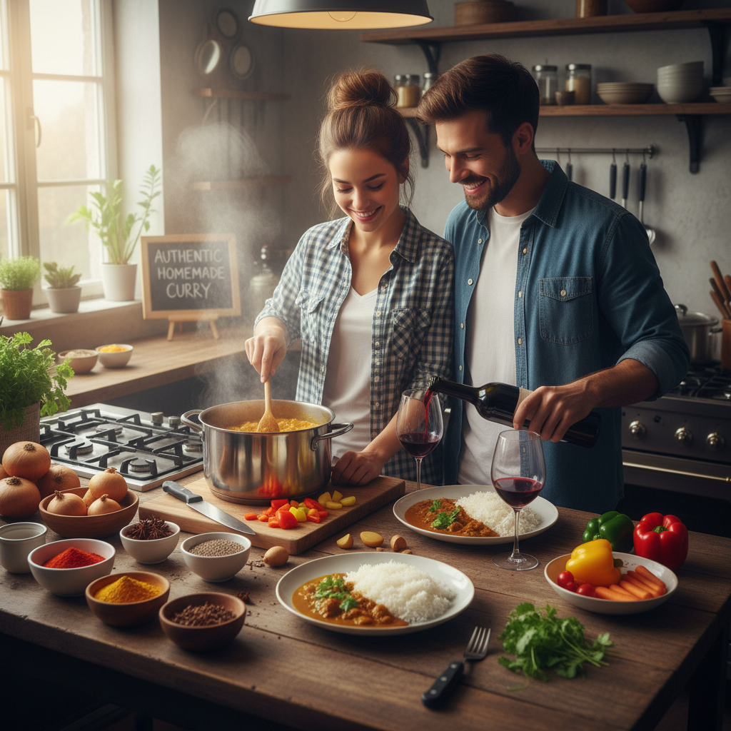 煮込んでいる間、私たちはキッチンカウンターに並んで座り、ワインを少し飲みながら会話を楽しむ。ちょっと広いキッチンには、こうしてゆったりと過ごせるスペースがあるのが嬉しい。鍋からは湯気が立ち上り、スパイシーな香りがどんどん濃厚になっていく。時折、味見をしながら塩加減を調整する。「もう少し塩を足そうか」「いや、このくらいがちょうどいいと思う」。そんな些細なやり取りさえも、二人で料理をする楽しさの一部だ。