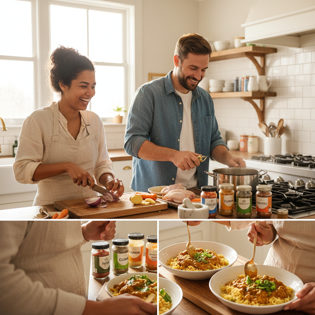 二人で作るスパイシーカレーライス、キッチンに広がる幸せな料理時間