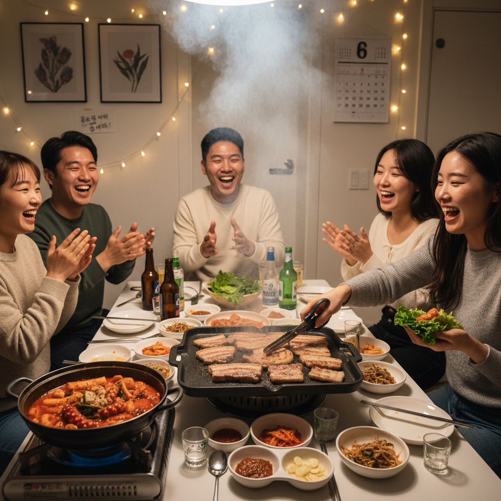 そのことを頭で理解していても、実際にこうして友人たちと囲む食卓の上にサムギョプサルやキムチチゲが並ぶ光景は、なんだか不思議と自然だ。「韓国料理って、集まって食べるのが一番おいしいよね」と誰かが言って、それに全員がうなずいた。