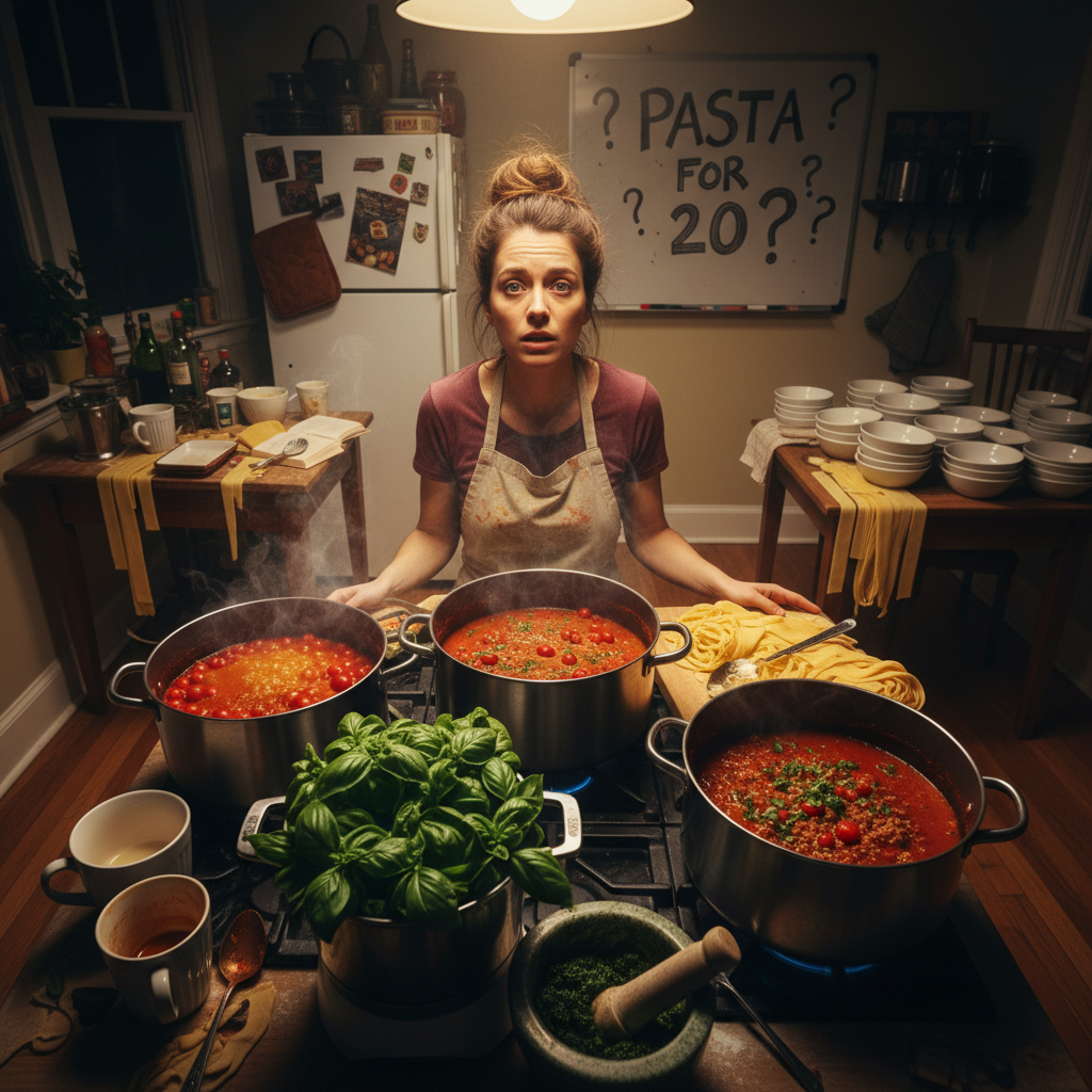 パーティって言葉の響きに騙されるんだよね。友達5人くらい呼ぶだけなのに、頭の中ではなぜか20人規模のビュッフェを想像してしまう。カプレーゼ、ブルスケッタ、ラザニア、それからパスタを2種類。デザートにティラミス。我ながら正気じゃなかった。当日の午後3時くらいから台所に立ちっぱなしで、玄関のチャイムが鳴った時には既にTシャツが小麦粉まみれになっていた。
