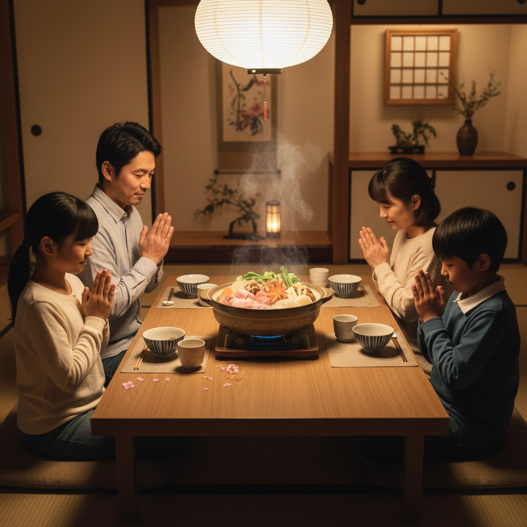 箸を手に取り、まずは「いただきます」と手を合わせる。この言葉には、食材への感謝、作ってくれた人への感謝、そして共に食卓を囲める幸せへの感謝が込められている。言葉を発した後、家族はそれぞれのペースで食事を始める。急かすこともなく、静かに、それでいて確かに同じ時間を共有している。