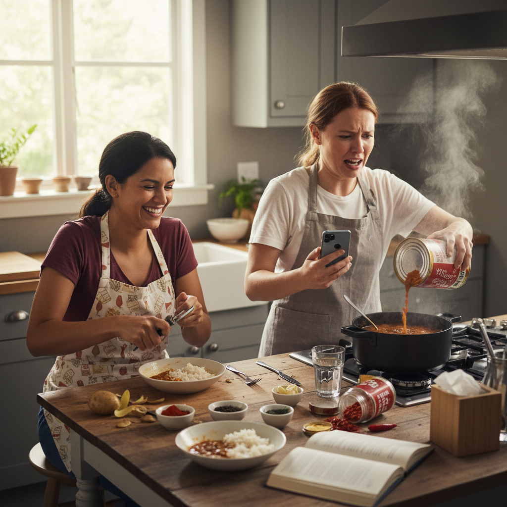 彼女が「カイエンペッパー小さじ半分ね」って言ったのに、僕は聞き間違えて小さじ1杯入れちゃったんだよね。彼女の顔が一瞬固まって、「ちょっと待って、今何入れた?」って。鍋の中を覗き込んだ彼女の表情で、やばいって悟った。「まあ、大丈夫でしょ。スパイシーな方が美味しいし」って強がったんだけど、彼女は「スパイシーと激辛は違うから」って真顔で返してくる。そこから彼女はスマホで「カレー 辛すぎた 対処法」とか検索し始めて、僕は申し訳ない気持ちでトマト缶を追加で開けたりしてた。