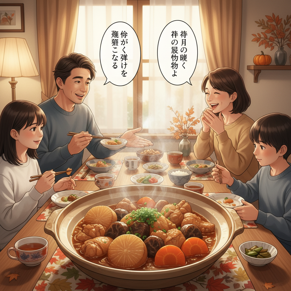 ふと、子どもの頃のことを思い出した。あの頃も、こんなふうに家族で食卓を囲んでいた。ただし当時の私は、煮物が嫌いで仕方なかった。特に、こんにゃくの食感がどうしても受け入れられなくて、母に隠れて残そうとしたことが何度もある。それを父に見つかって、「好き嫌いは許さん」と叱られた記憶もある。今ではそのこんにゃくを、何の抵抗もなく食べている自分がいる。味覚は変わるものだ。