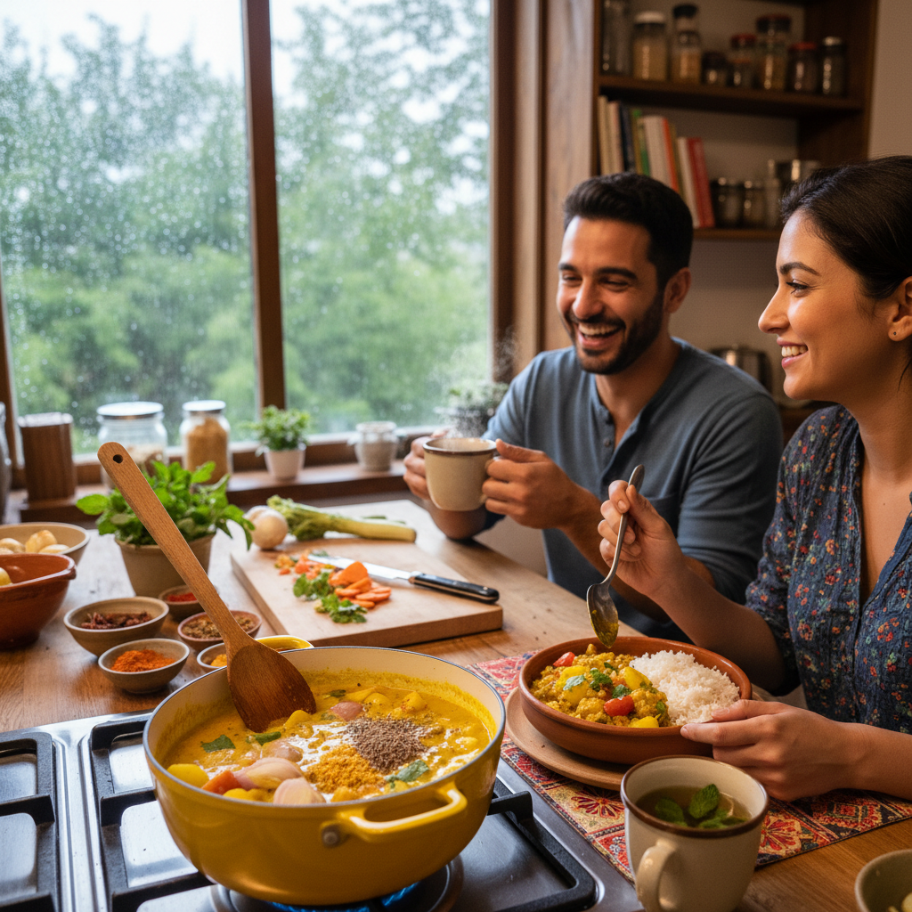 雨はまだ降り続いていた。僕たちはゆっくりとカレーを食べ終え、食器を洗いながら次は何を作ろうかと話していた。キッチンにはまだスパイスの香りが残っていて、それが心地よい余韻のように僕たちを包んでいた。
