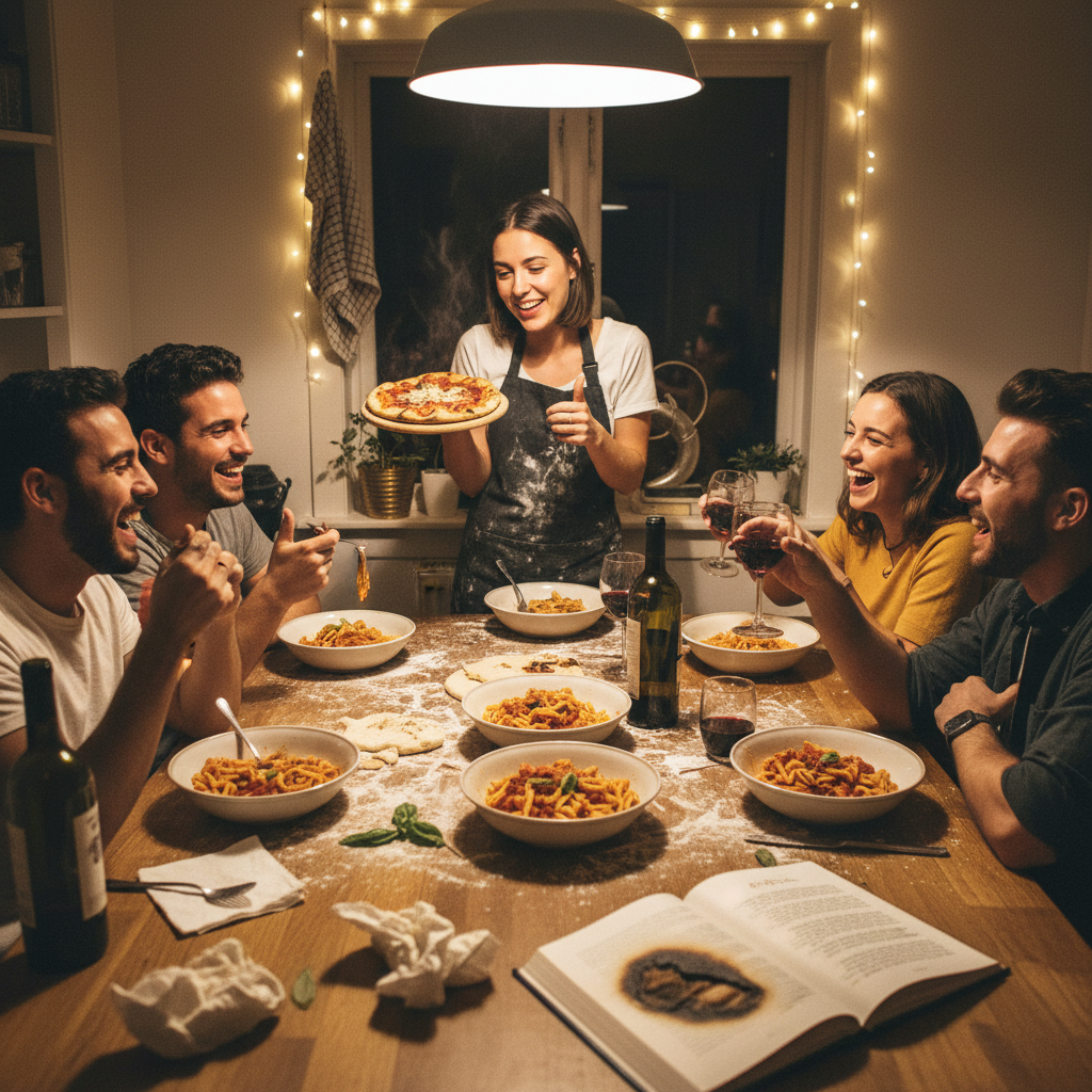 イタリアン料理でパーティをやろうと思ったのは、なんとなくオシャレに見えるかなって。パスタとか、ピザとか、カプレーゼとか並べておけば、それっぽく見えるじゃん。私、料理は得意じゃないんだけど、まあなんとかなるだろうって軽く考えてた。当日の朝、スーパーで買い物してる時点で「あれ、これ本当に間に合うのか?」って気づいたけど、もう後戻りできない。トマト缶を5個もカゴに入れながら、なんで私こんなことしてるんだろうって思ったよね。