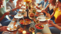 「いただきます」という声が重なり合い、箸を持つ手が動き始めます。最初は誰もが無言で、料理の味わいに集中します。やがて、学校であった出来事や、仕事での出来事など、自然と会話が生まれ始めます。時には真面目な話題で、時には笑い声が響き渡ります。