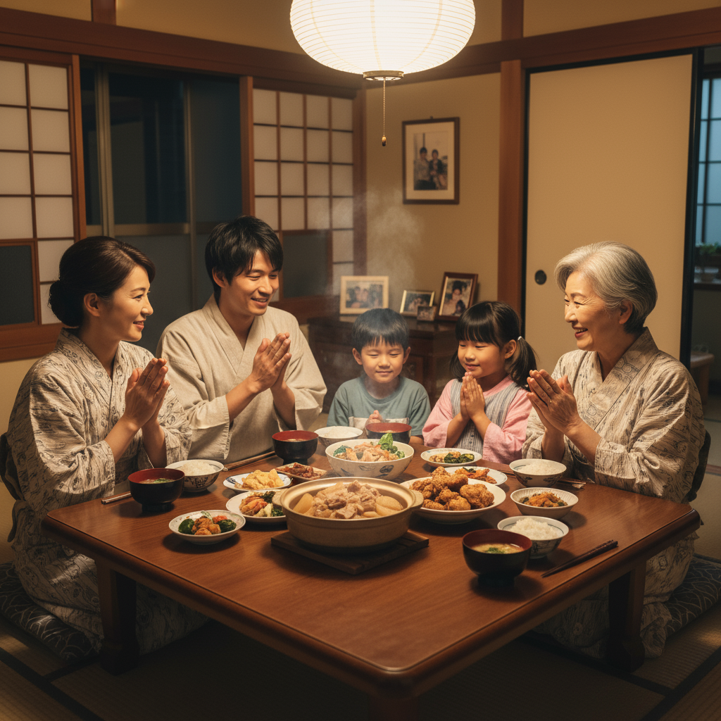 夕暮れ時、窓から差し込む柔らかな光が食卓を優しく照らしています。台所からは味噌汁の香りが漂い、炊きたてのご飯の湯気が立ち上っています。私たち家族の日常の風景は、まるで一枚の絵のように穏やかで美しいものです。