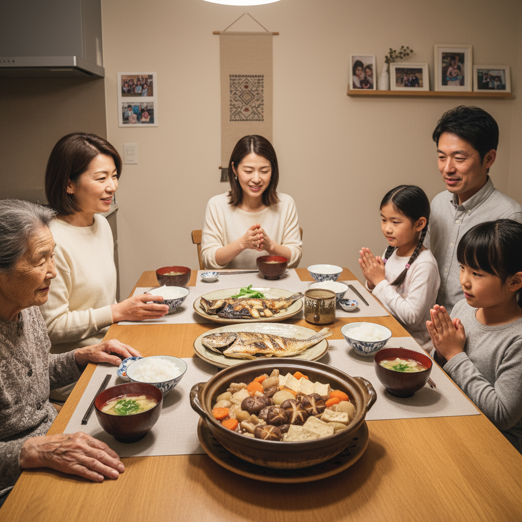 家族で交わす挨拶の声は、決して大きくありません。しかし、その静かな言葉の中に、感謝の気持ちと幸せが確かに宿っているのです。箸を持つ手の動きさえ、穏やかな空気を乱すことはありません。