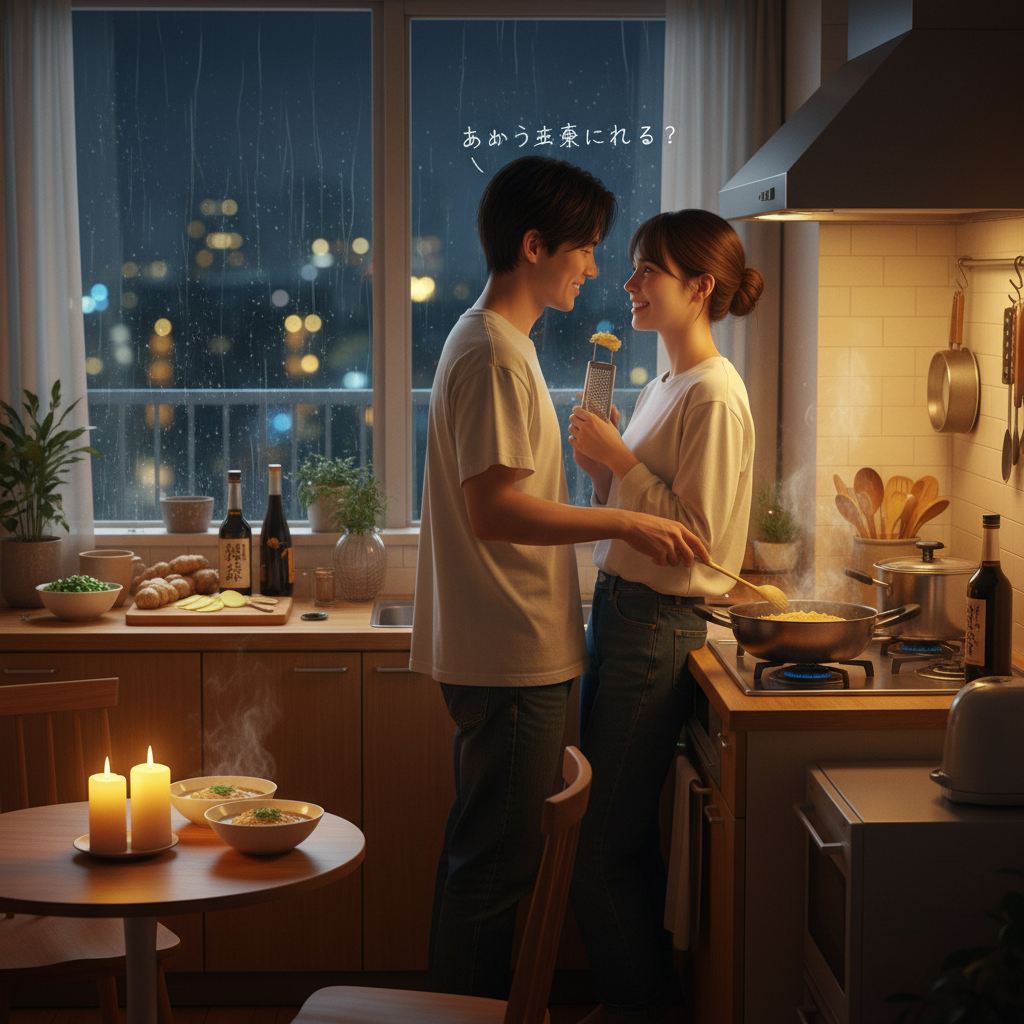 その夜、二人は特別な計画を立てていたわけではなかった。ただ、「何か作ろうか」というひと言から、気づけばキッチンに並んで立っていた。彼女が玉ねぎを刻み、彼がフライパンを温める。それだけのことなのに、不思議と言葉が少なくなる。静かな夜というのは、沈黙さえも柔らかく包んでしまうものだ。