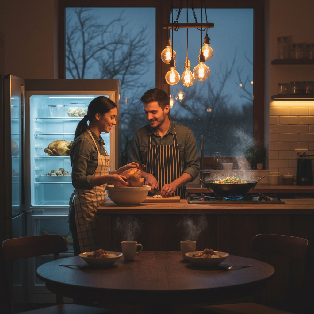彼女が冷蔵庫を開けるたびに、白い光がふわっと広がる。「鶏むね、あったよ」と言いながら振り返るその横顔を、なんとなく見ていた。今夜は特別な料理をするわけでもない。ただ、二人で同じキッチンに立って、同じ鍋を囲む。それだけのことが、なぜかひどく贅沢に感じられる夜がある。