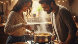 一皿目が空になると、すぐに次のメニューの準備が始まります。今度はキムチチゲを作ることに。豚肉とキムチ、豆腐をたっぷり入れた鍋がグツグツと煮えてくると、部屋中に食欲をそそる香りが広がります。「このスープ、ご飯にかけて食べたい!」という声に応えて、炊きたてのご飯も登場。キムチチゲをご飯にかけて食べるクッパスタイルは、韓国料理好きにはたまらない食べ方です。
